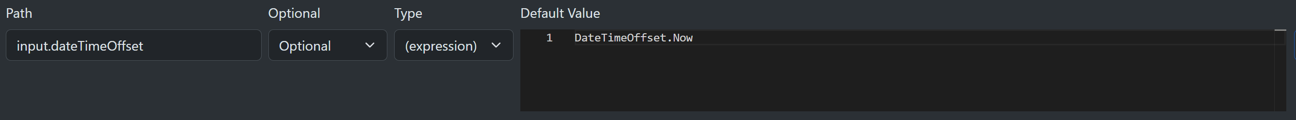 If one of the listed types is not appropriate, you can use a C# expression to return a value. In the following example, the expression returns the current date and time. This works because the returned type DateTimeOffset is a scalar and all scalars can be persisted to and from JSON without additional work. Returning a class would require you to add an appropriate JsonConverter to the SharpOMatic setup during program setup.