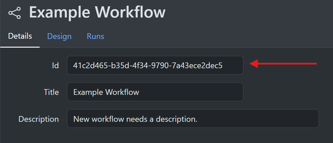 var workflowId = await engine.GetWorkflowId("Example Workflow");